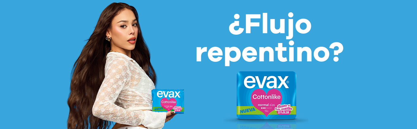 Gracias a sus alas adapt y a la cobertura con tacto de algodón, Evax Cottonlike te ofrece mayor comodidad cuando la llevas, pero también en el momento de quitártela. Además, su sistema único dual con perlas activas neutraliza el olor y absorbe el flujo al instante para que te sientas hasta 100% limpia. Con Evax te sentirás limpia, te sentirás bien.